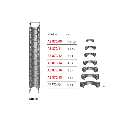 Michel Clips are small, metal surgical clips used for closing small incisions or wounds, often as an alternative to sutures. They are applied and removed using specialized forceps.
