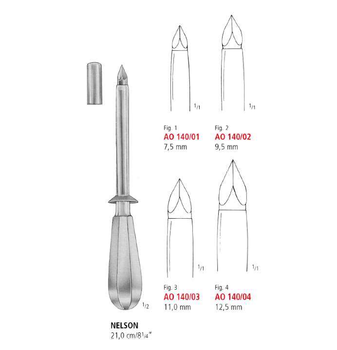 Nelson Trocar is used to open a window in the thoracic wall and drain fluid collections from certain cavities, such as the pericardium or mediastinum.